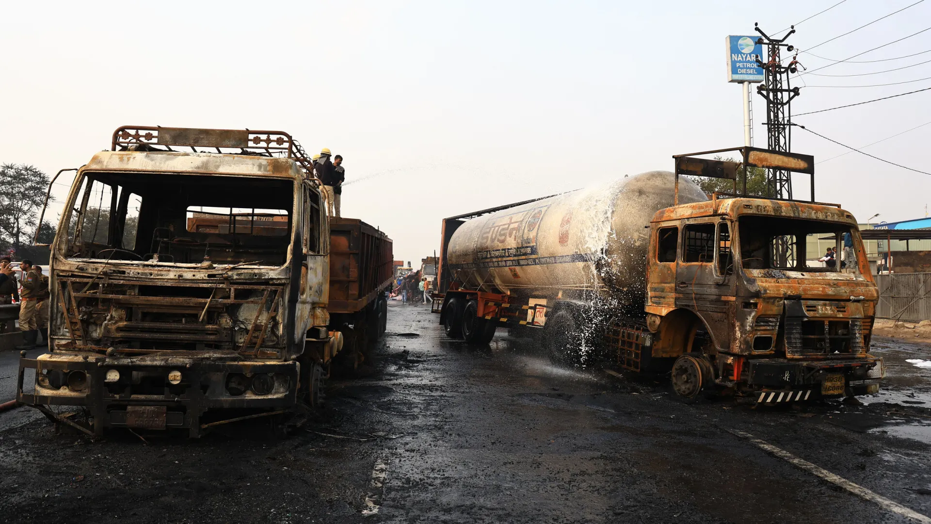 Um homem de 32 anos, envolto em chamas, percorreu cerca de 600 metros para pedir ajuda após a explosão de um caminhão de gás, na sexta-feira (20), em Jaipur, na Índia. No entanto, as pessoas presentes no local se limitaram a filmar a cena em vez de auxiliá-lo.